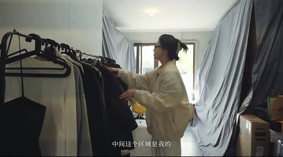 这个临时的出租屋,就是杨子姗一家的小仓库。衣服仍在纸箱里,纸箱外面还会再盖一层防尘布。虽然看起来比较杂乱,但还是比较规矩的。