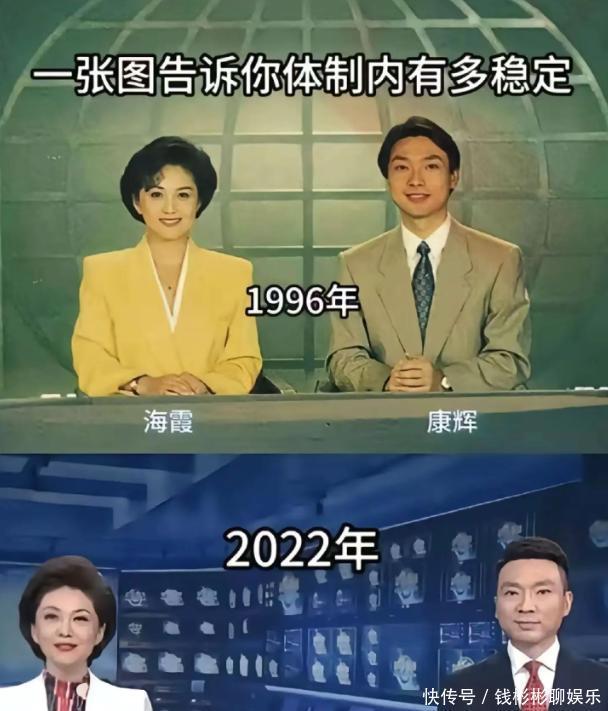 之前发现有一张康辉和海霞在1996年与2022年主持新闻联播的对比图,挺有意思的。